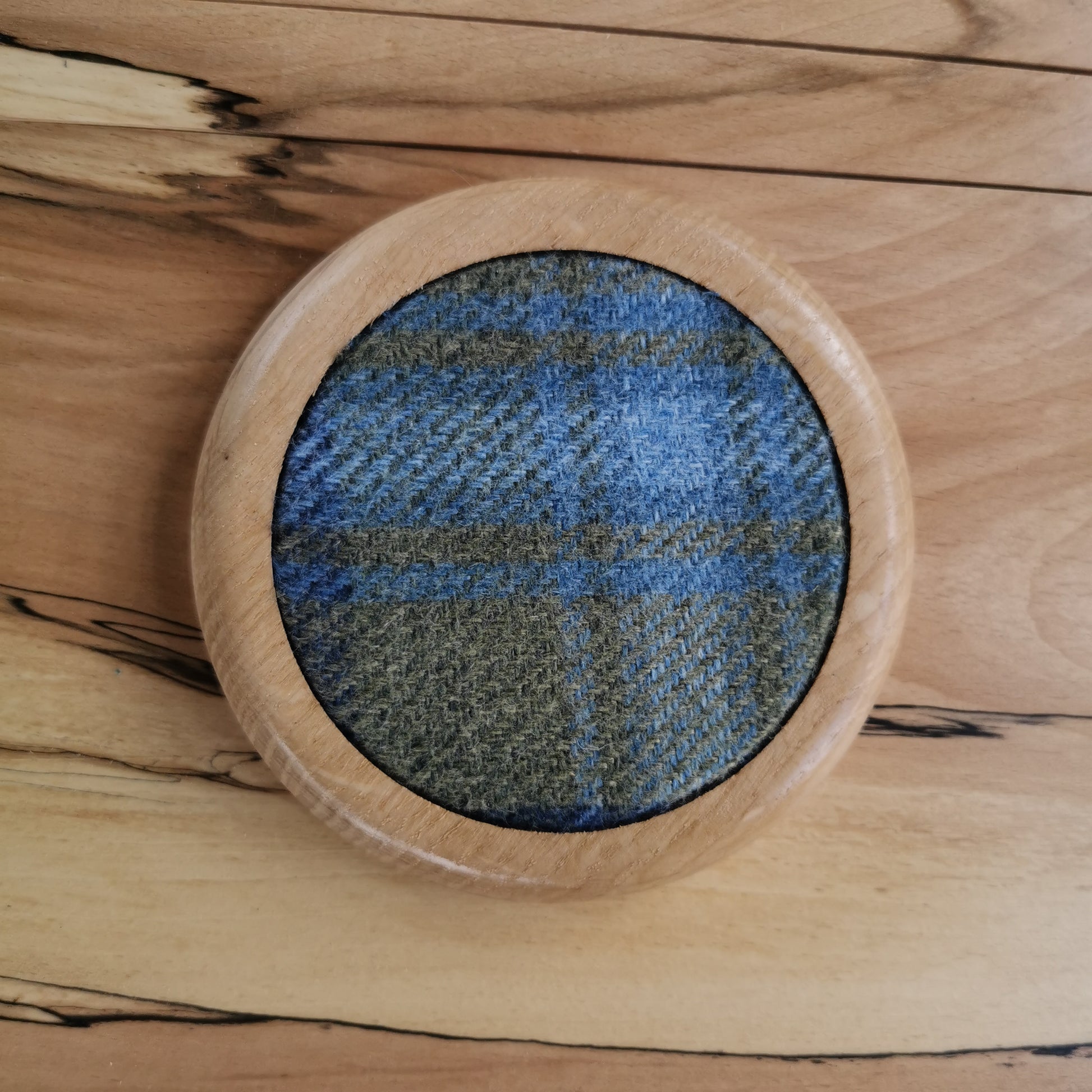 Handcrafted Oak Coaster with Wool Check Inlay