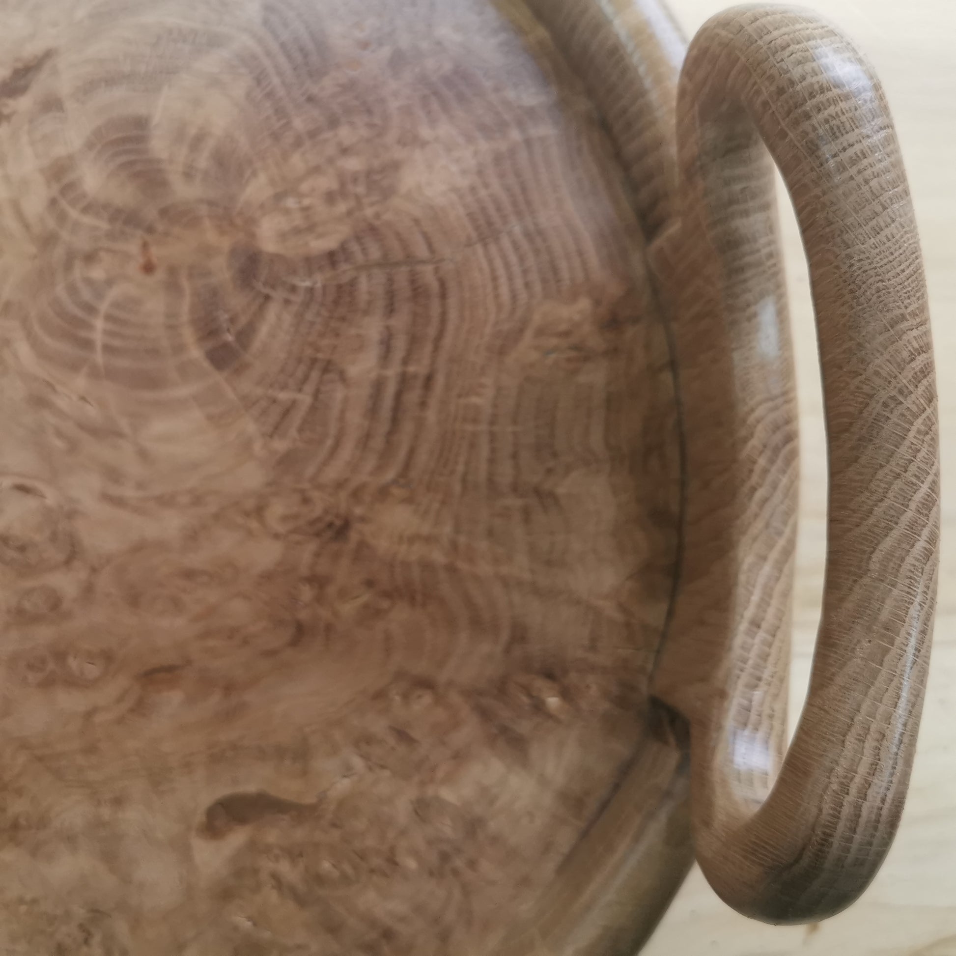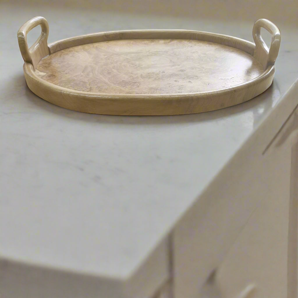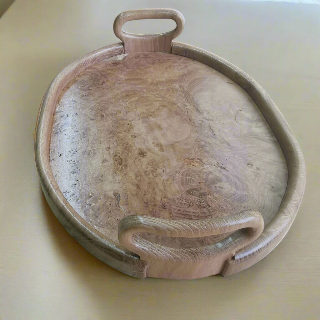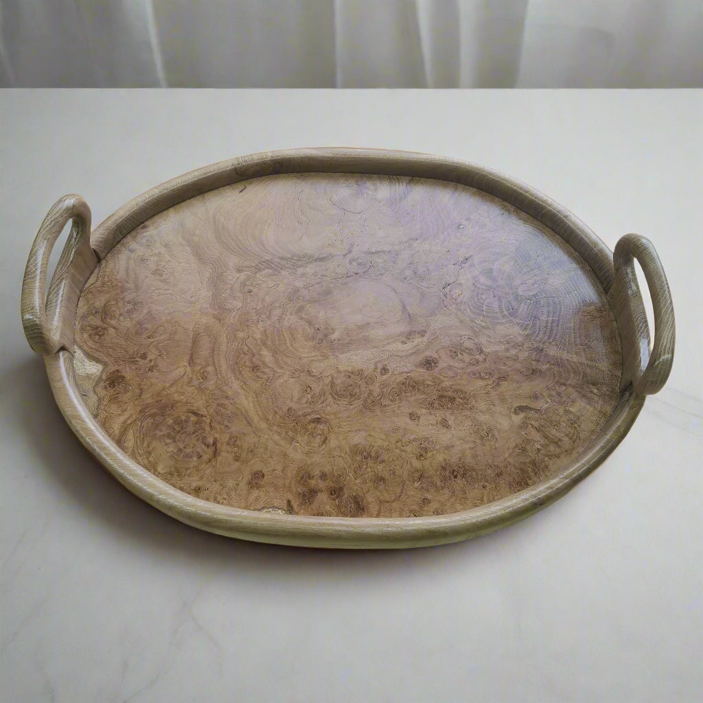 Handcrafted Oval Oak Serving Tray with Burr Oak Centre and Carved Handles