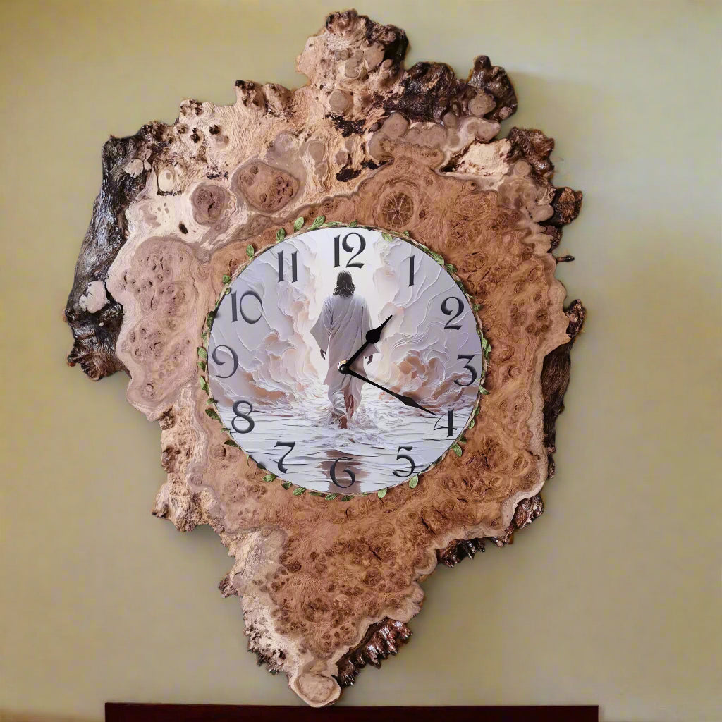 Bring timeless faith and natural beauty into your space with this one-of-a-kind rustic live edge clock. Handcrafted from richly grained wood, its raw, organic edges preserve the untouched character of the tree it came from — making each piece unique.